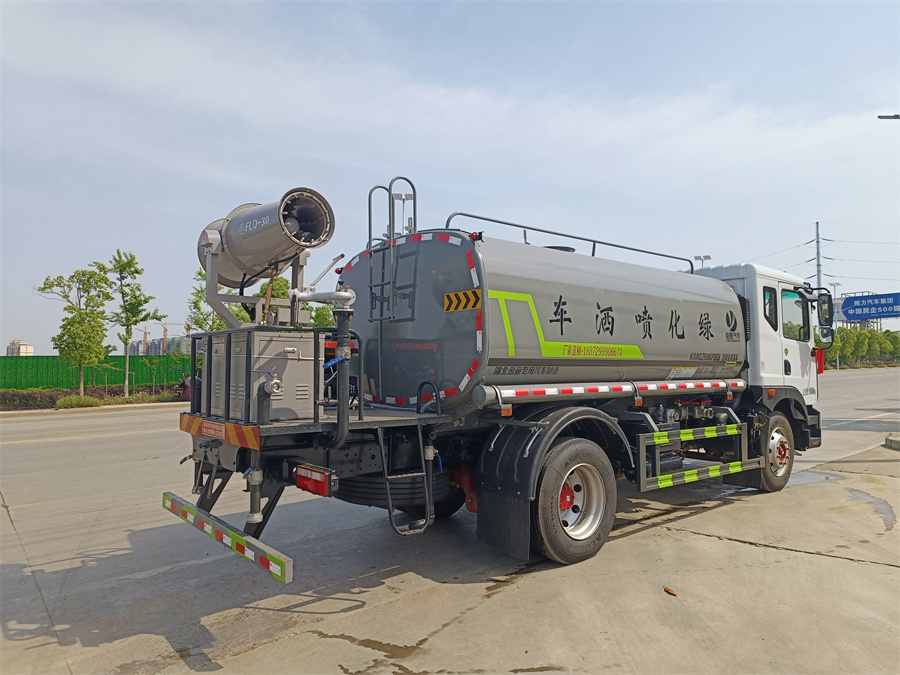 我公司產品標配前噴(鴨嘴)、后沖、后灑、側噴、后置式工作 平臺,平臺上配置綠化水炮(可 360°旋轉,既可以調成柱狀,也可 以調成霧狀,更可以調成直沖狀、大雨、中雨、小雨、毛毛雨),配 備優質大功率專用灑水泵(可自吸自排,可從河里或池塘抽水到罐體), 取力器,雜物過濾網,消防接口,自流球閥系統、取力器、球閥、濾網 均為國家標準產品,主管道加粗,法蘭墊、法蘭盤加厚,大通徑球閥。 整體具備性能優良安全可靠、效率高、流量大、維修方便等特點