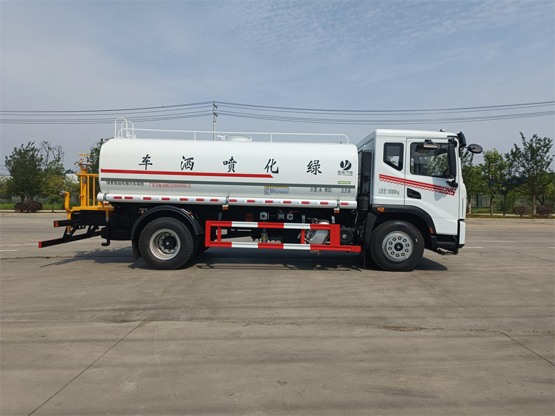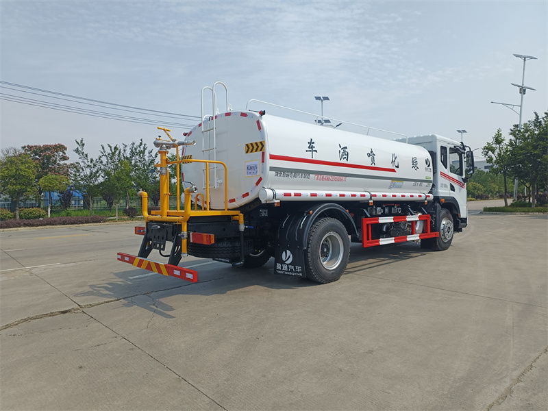 東風(fēng)15方灑水車產(chǎn)品標(biāo)配前噴(鴨嘴)、后沖、后灑、側(cè)噴、后置式工作 平臺(tái),平臺(tái)上配置綠化水炮(可360°旋轉(zhuǎn),既可以調(diào)成柱狀,也可 以調(diào)成霧狀,更可以調(diào)成直沖狀、大雨、中雨、小雨、毛毛雨),配 備優(yōu)質(zhì)大功率專用灑水泵(可自吸自排,可從河里或池塘抽水到罐體), 取カ器,雜物過濾網(wǎng),消防接口,自流球閥系統(tǒng)、取カ器、球閥、濾網(wǎng) 均為國家標(biāo)準(zhǔn)產(chǎn)品,主管道加粗,法蘭墊、法蘭盤加厚,大通徑球閥。 整體具備性能優(yōu)良安全可靠、效率高、流量大、維修方便等特點(diǎn)。