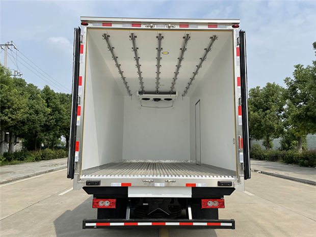奧鈴排半5米2冷藏車(chē)廂體配置為:斷橋隔溫工藝,整體結(jié)構(gòu)框架,內(nèi)外面料為3mm新款啞光玻璃鋼夾保溫層真空復(fù)合而成,廂體厚度為8cm,最新款鋁合金包邊型材,型材局部厚度為4mm(鋼制鉚釘加固),廂體內(nèi)部采用2個(gè)LED照明燈及廂體示寬燈,后門(mén)框不銹鋼材質(zhì),門(mén)框密封條為三元乙丙橡膠材質(zhì),加厚型不銹鋼合頁(yè)及鎖件;副梁為Q700車(chē)用大梁鋼,15mm厚大梁墊皮,加裝防撞膠塊,不銹鋼門(mén)鎖件,配后雙開(kāi)門(mén),副駕駛一側(cè)居中靠前開(kāi)單側(cè)門(mén)一個(gè),帶2個(gè)排水孔。