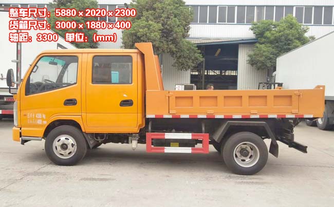 箱體容積5立方米,貨箱尺寸長3米,款1.88米,高0.4米,雙缸液壓舉升,后蓋手動開啟。